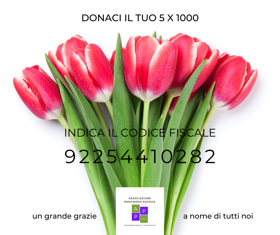Io dono il 5×1000 @AssociazioneParkinsonPadova per sostenere i malati e i loro familiari. Codice Fiscale 92254410282