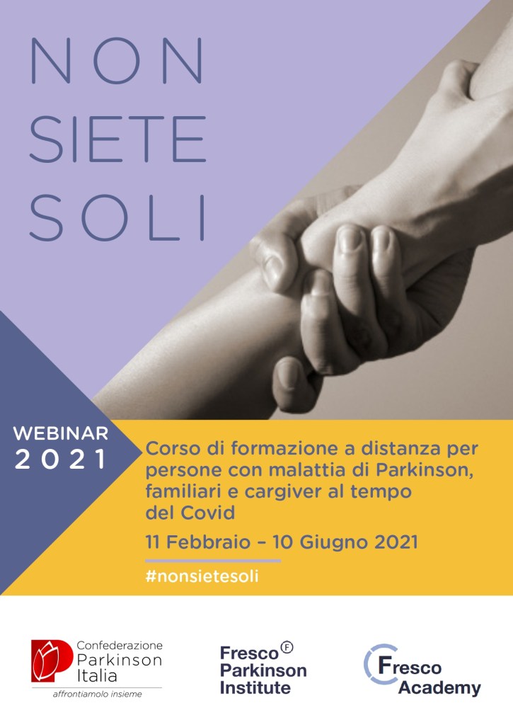 Il corso “Non siete soli” ha l’obiettivo di offrire alle persone con Parkinson e ai loro caregiver gli strumenti e le competenze necessarie a stimolare la partecipazione attiva nella gestione a domicilio della malattia, migliorando il benessere e la qualità di vita dell’intero nucleo familiare.