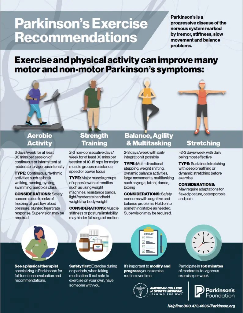 – garantire che le persone con Parkinson ricevano programmi di esercizio e istruzioni sicuri ed efficaci da parte dei professionisti dell’esercizio fisico