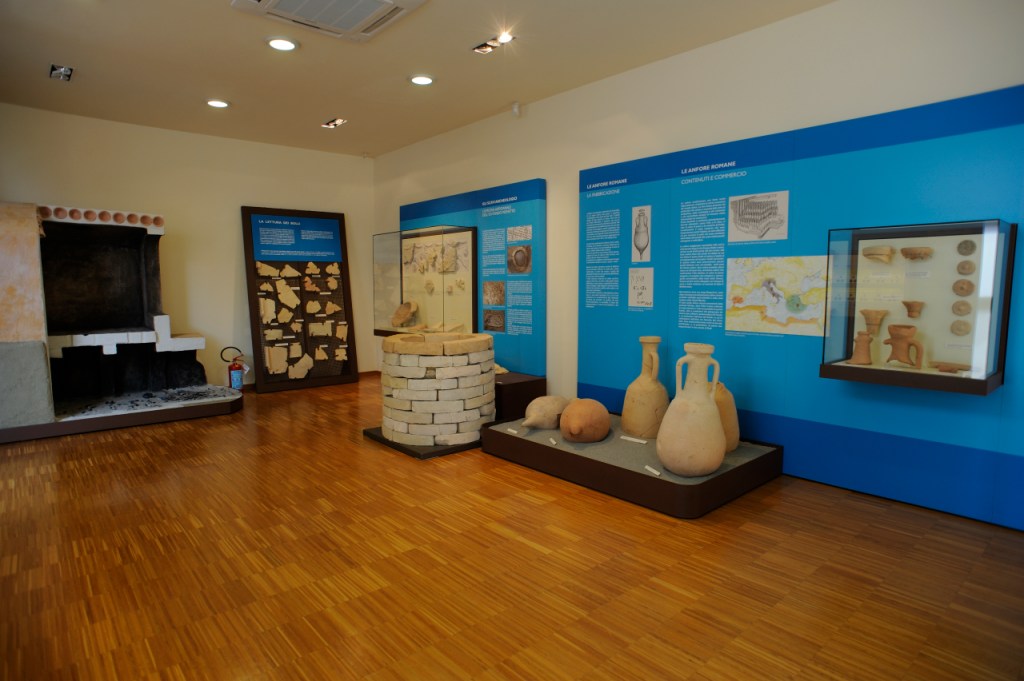 La sala azzurra si concentra sulle attività economiche, con la pregevole ricostruzione di un’antica fornace romana.