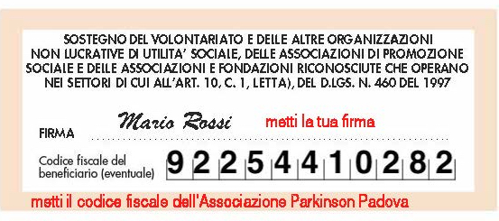 Se scegliete di destinare il vostro 5 per mille all’Associazione Parkinson Padova, ecco come fare.